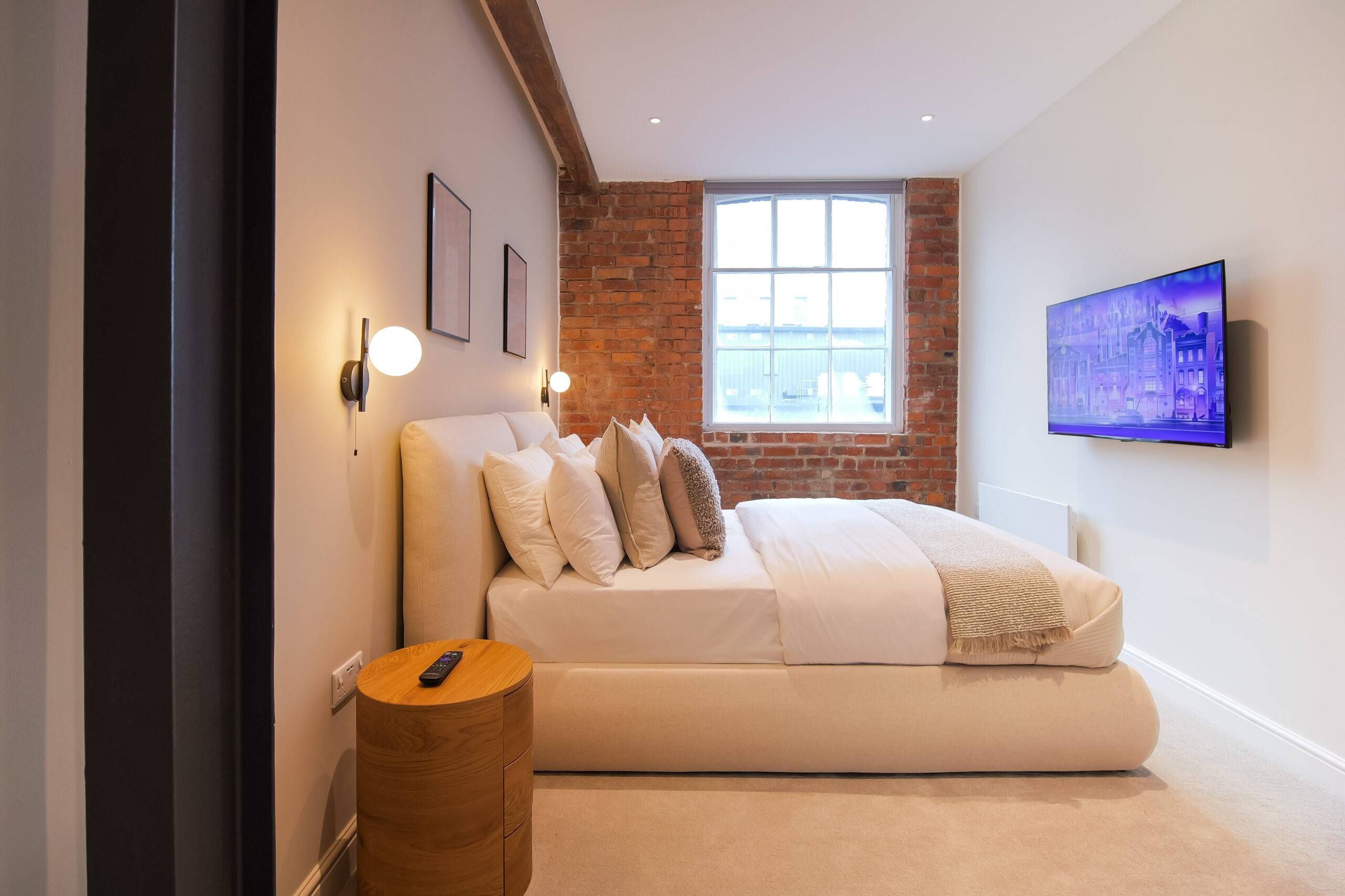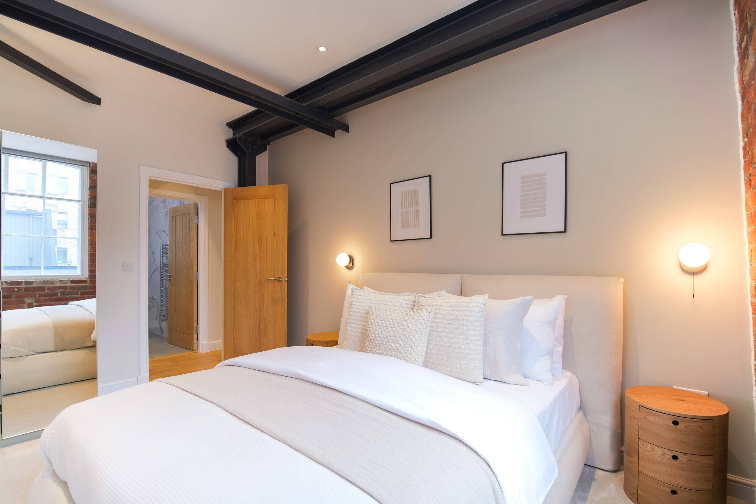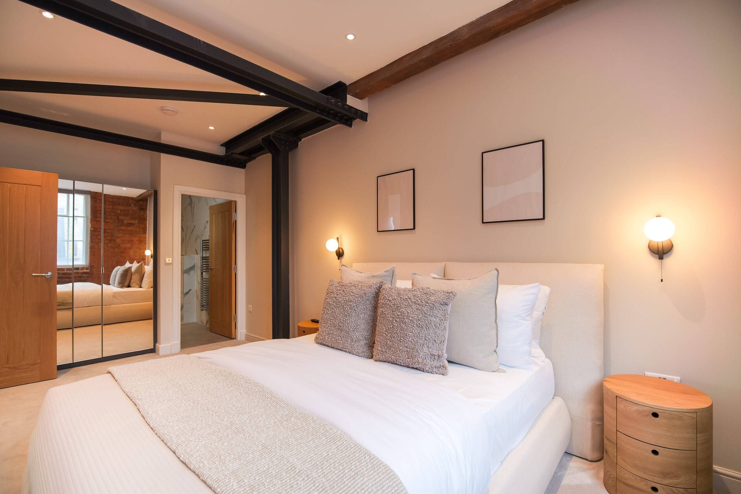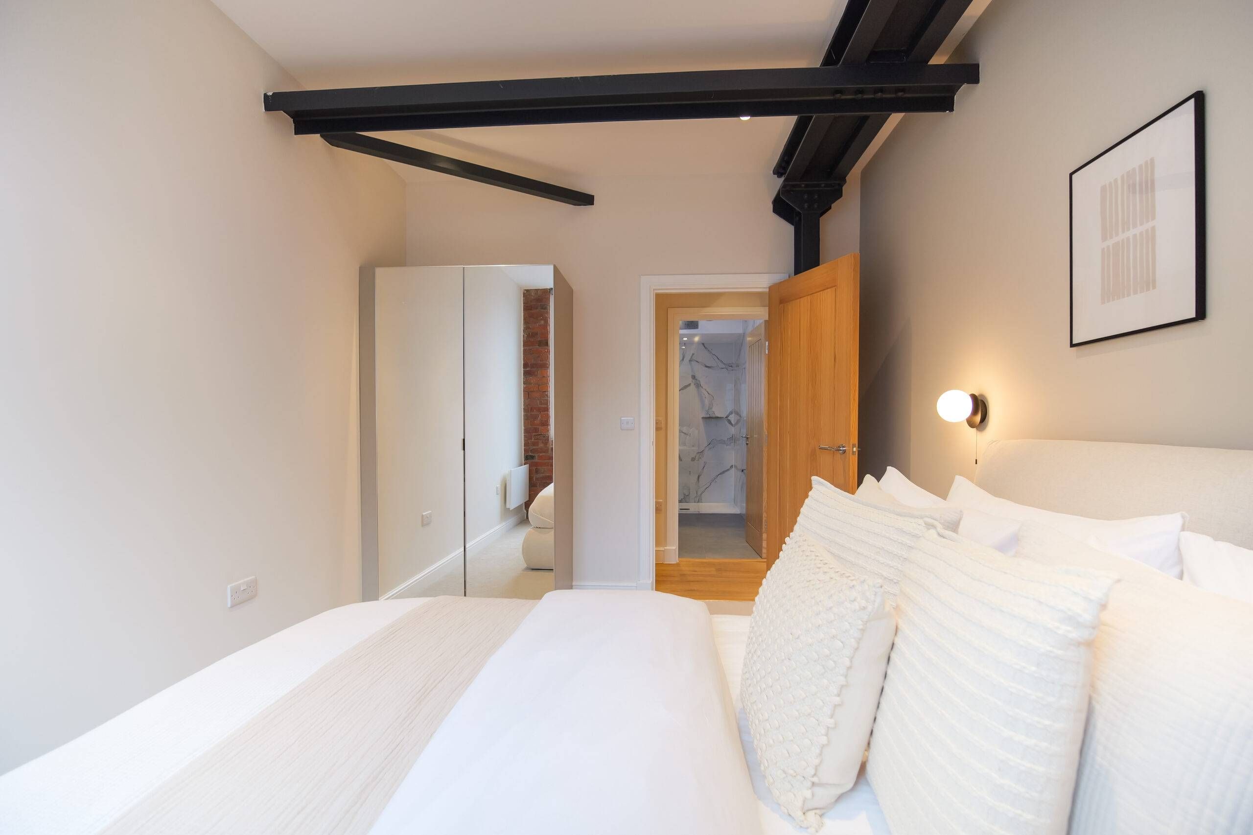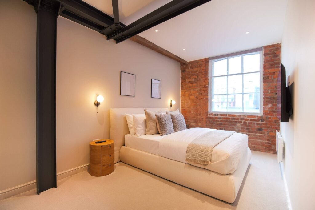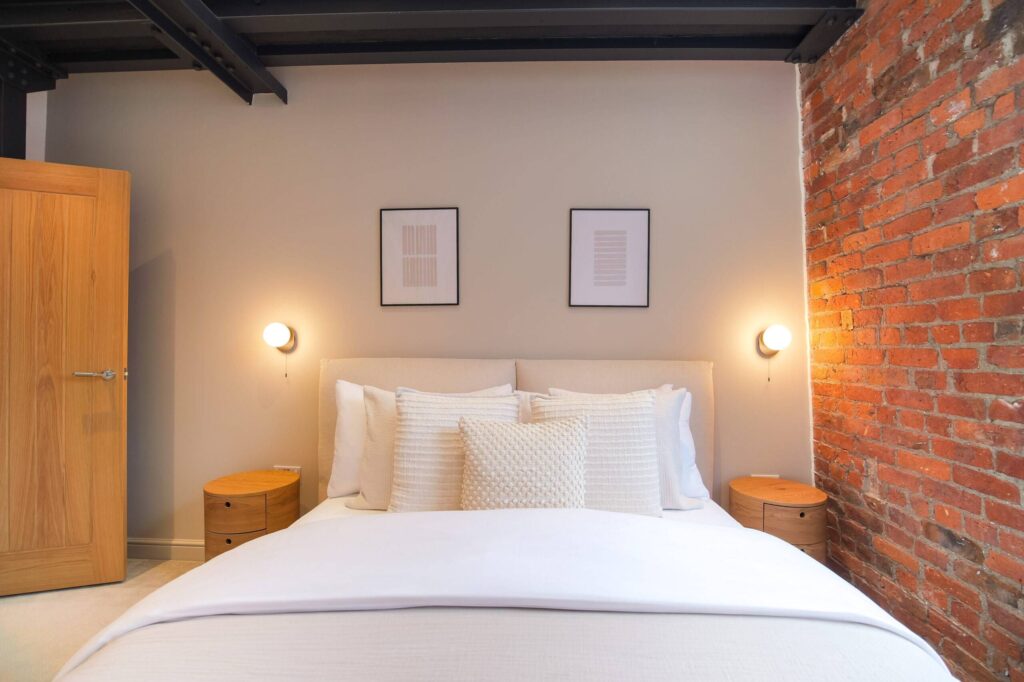 This two bedroom, two bathroom home of approximately 839 square feet is set within the reimagined T Barlow Brothers Umbrella Factory, a Grade II listed building in Manchester’s Ancoats district. Once defined by industry, the building now celebrates quiet craftsmanship and design. Arcadia Residence draws its name and spirit from the idea of an idyllic escape, a scene of simple pleasure and balance brought to life in modern form.