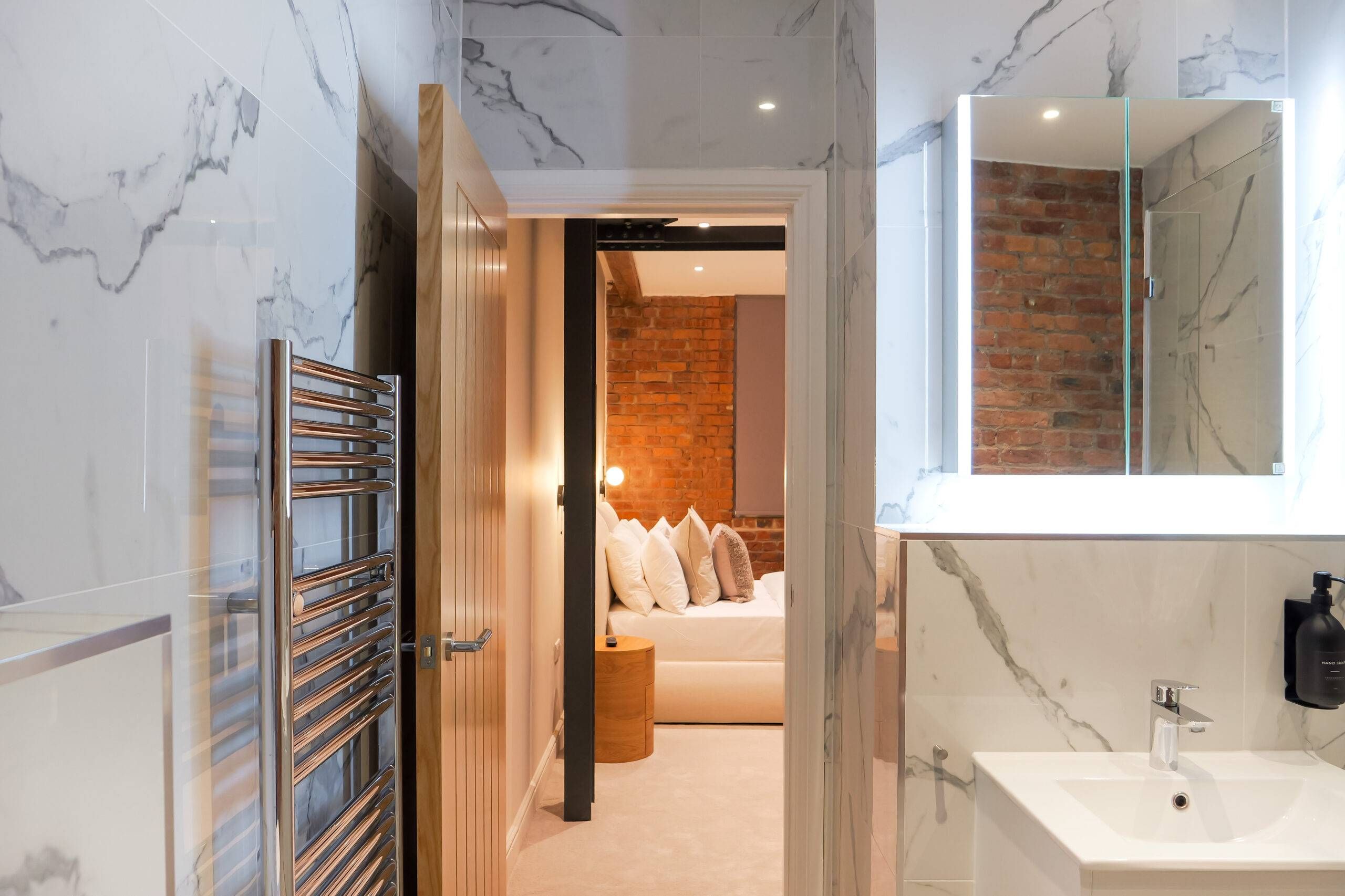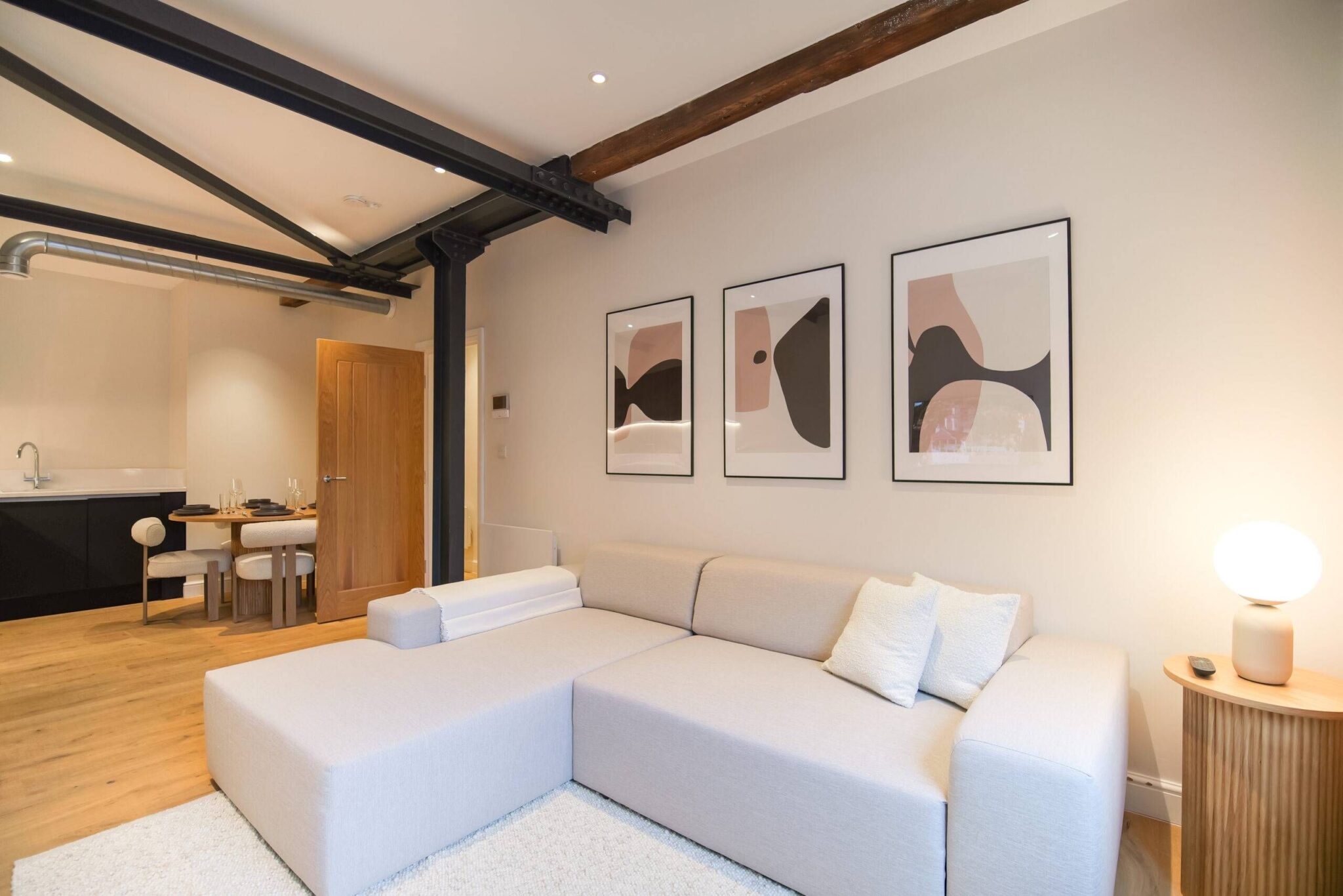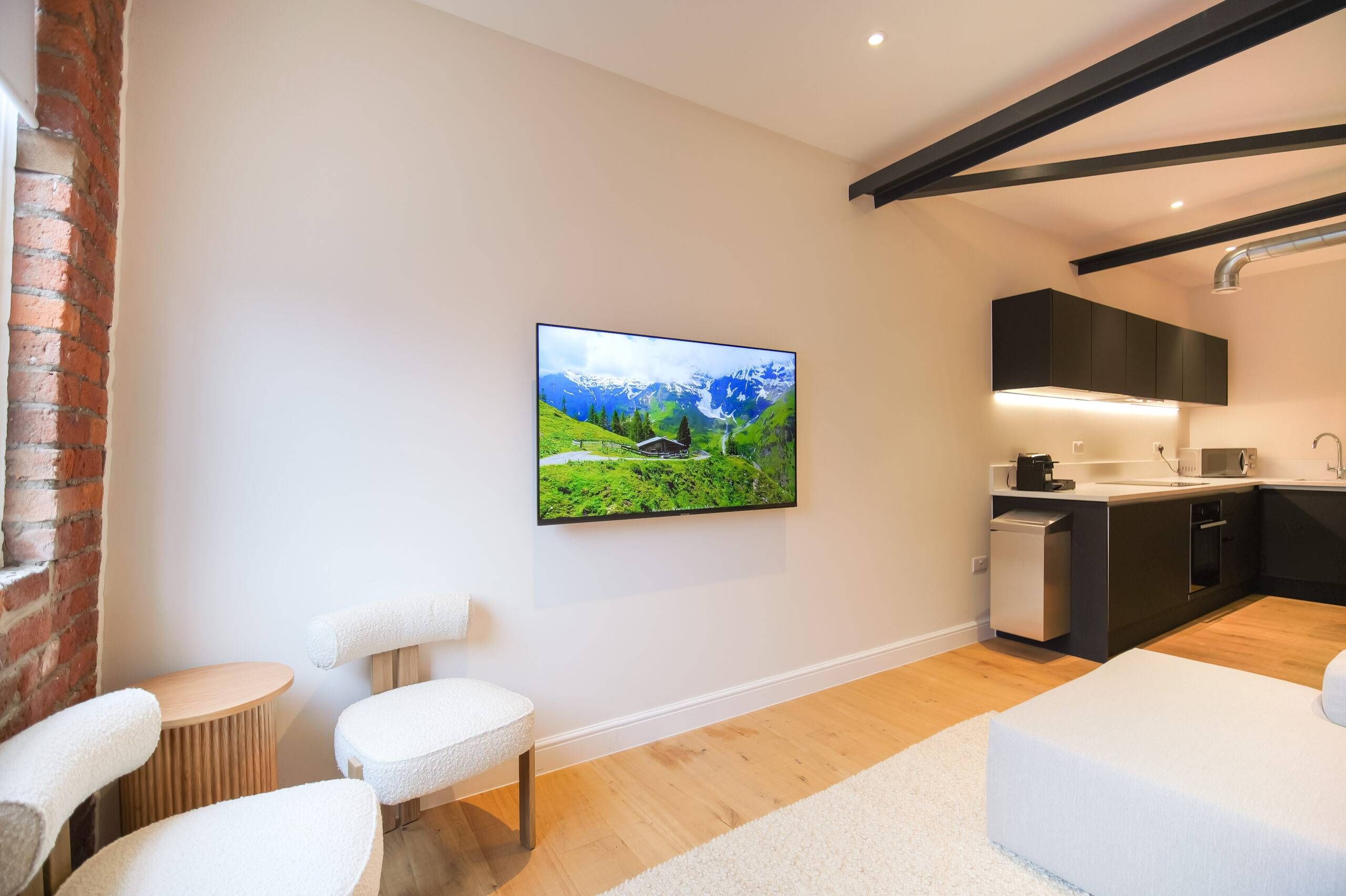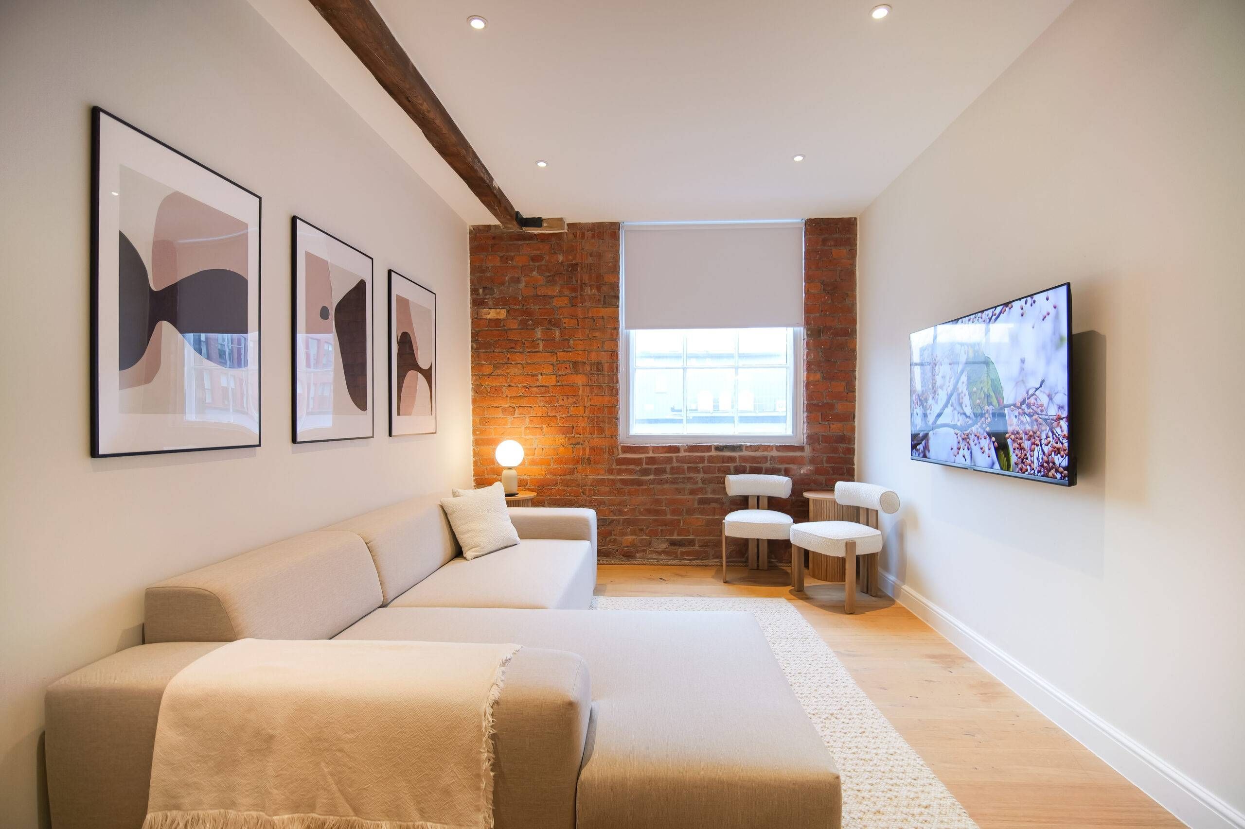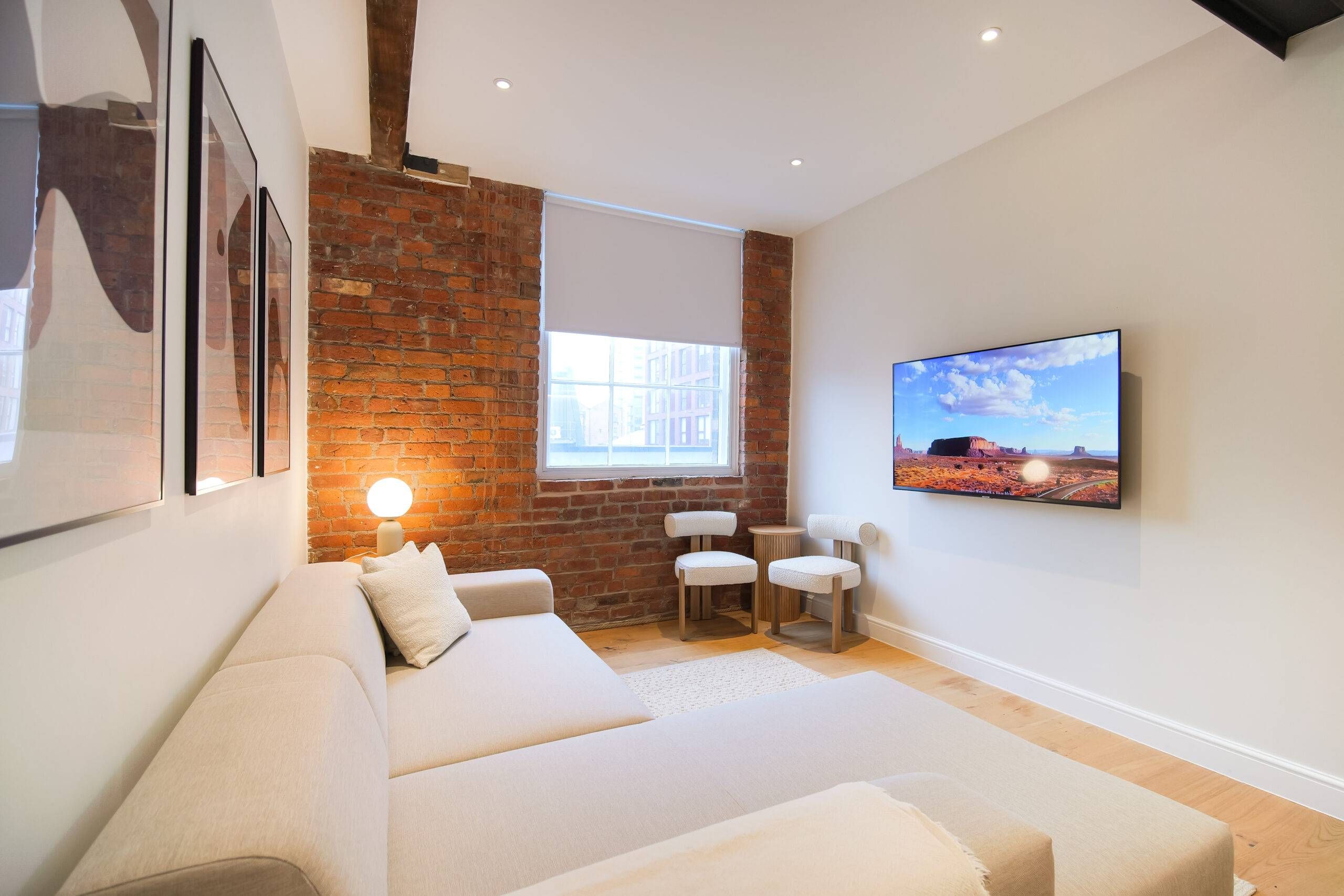 This two bedroom, two bathroom home of approximately 839 square feet is set within the reimagined T Barlow Brothers Umbrella Factory, a Grade II listed building in Manchester’s Ancoats district. Once defined by industry, the building now celebrates quiet craftsmanship and design. Arcadia Residence draws its name and spirit from the idea of an idyllic escape, a scene of simple pleasure and balance brought to life in modern form.