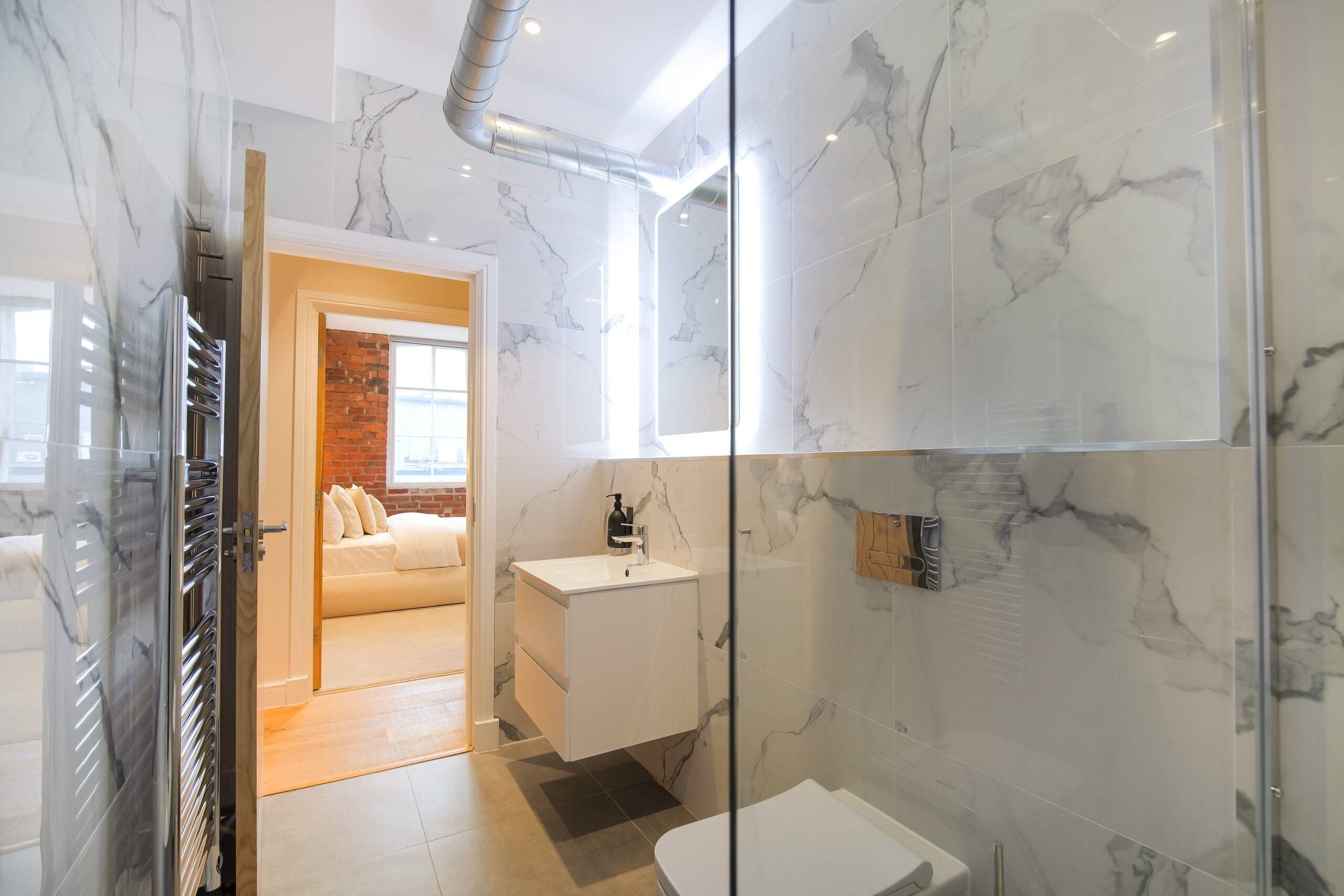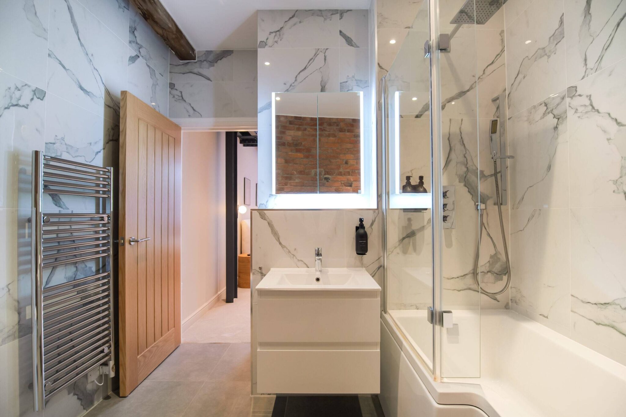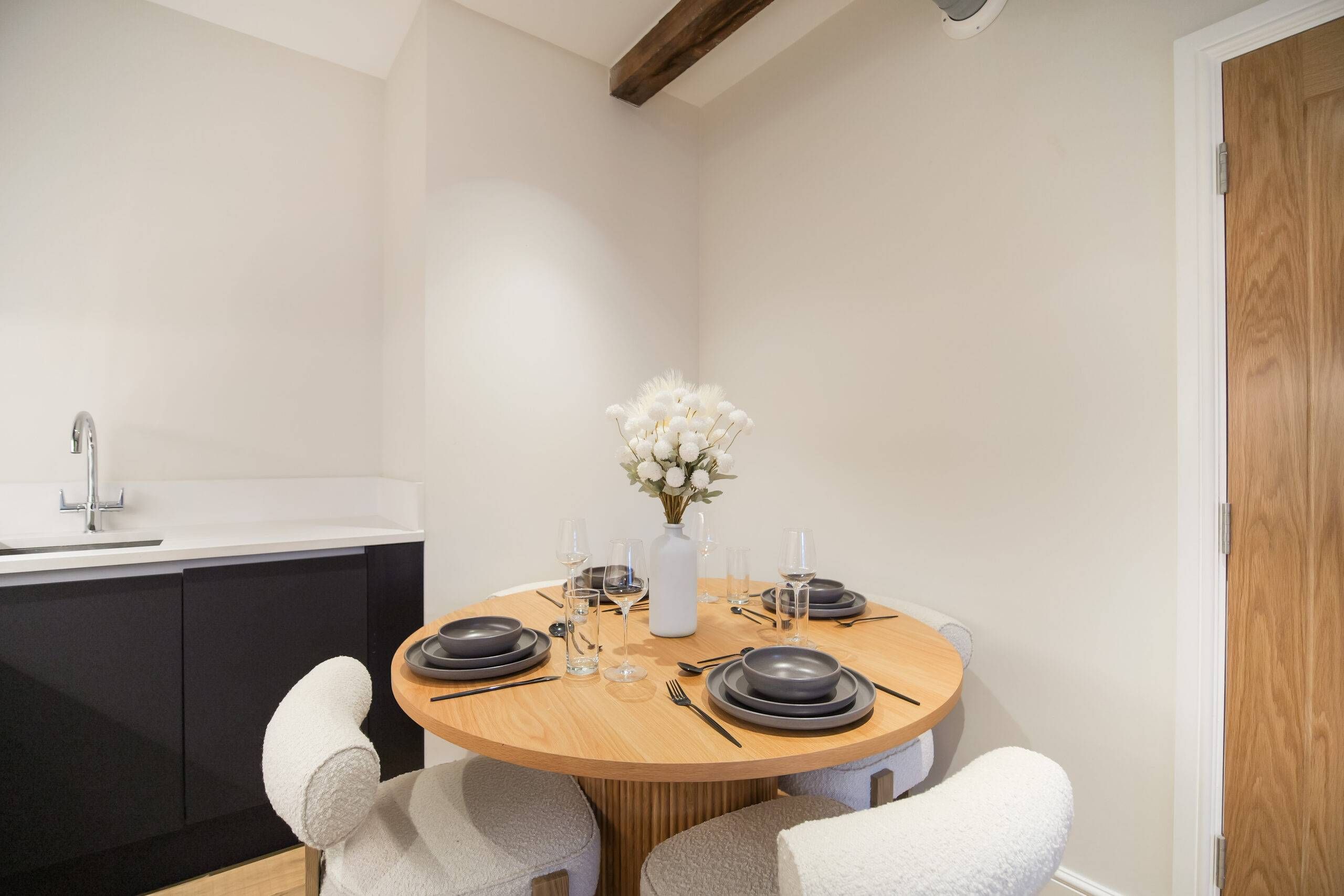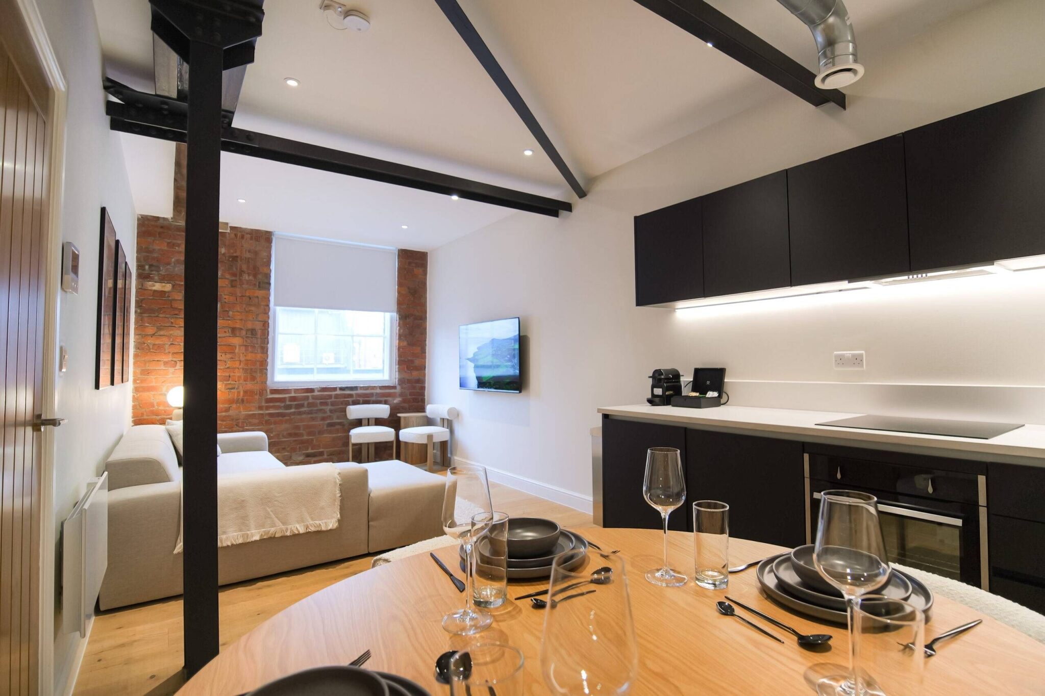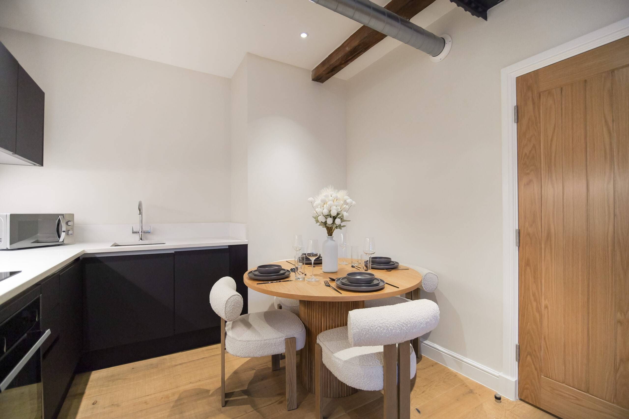 This two bedroom, two bathroom home of approximately 839 square feet is set within the reimagined T Barlow Brothers Umbrella Factory, a Grade II listed building in Manchester’s Ancoats district. Once defined by industry, the building now celebrates quiet craftsmanship and design. Arcadia Residence draws its name and spirit from the idea of an idyllic escape, a scene of simple pleasure and balance brought to life in modern form.