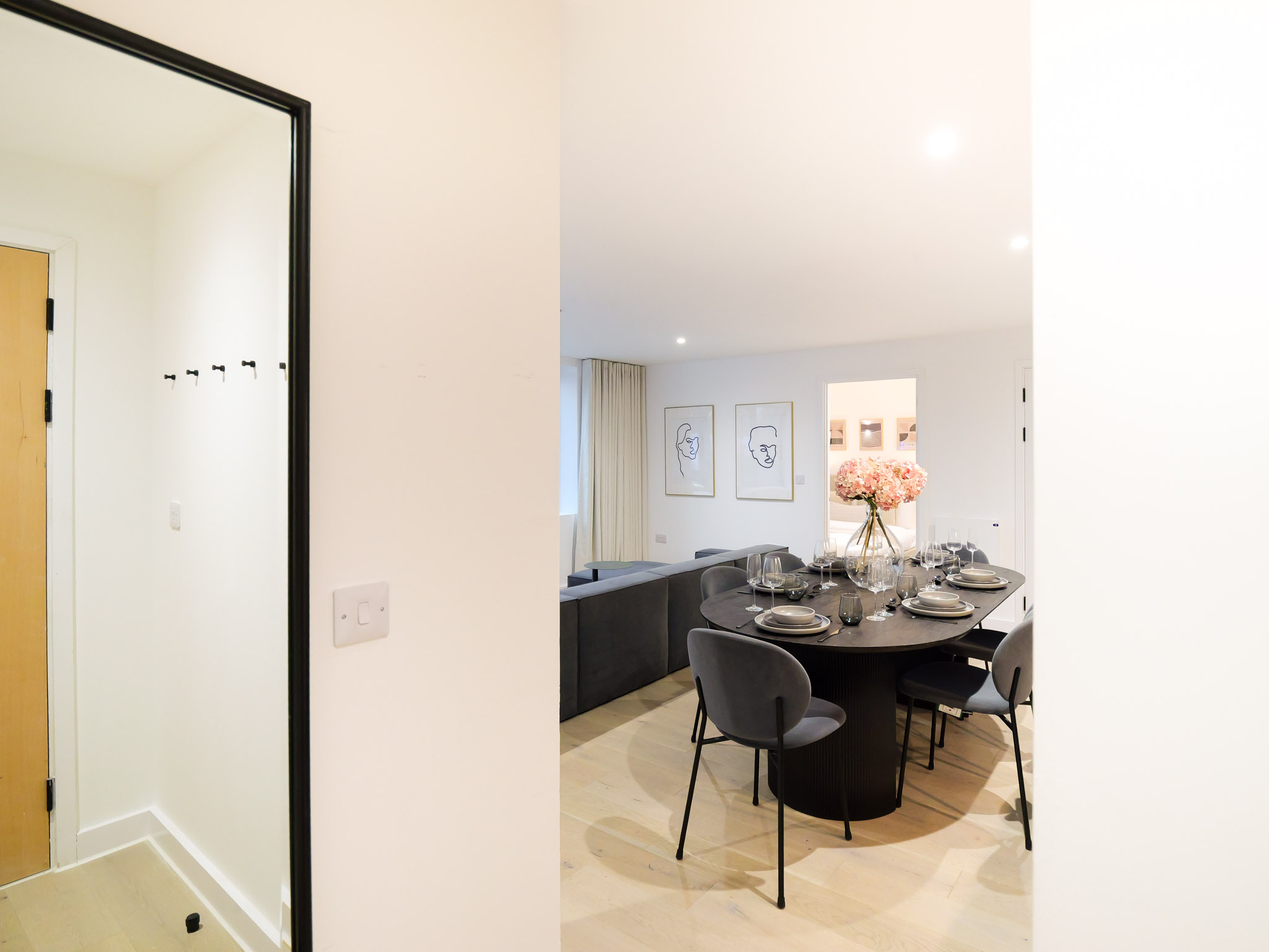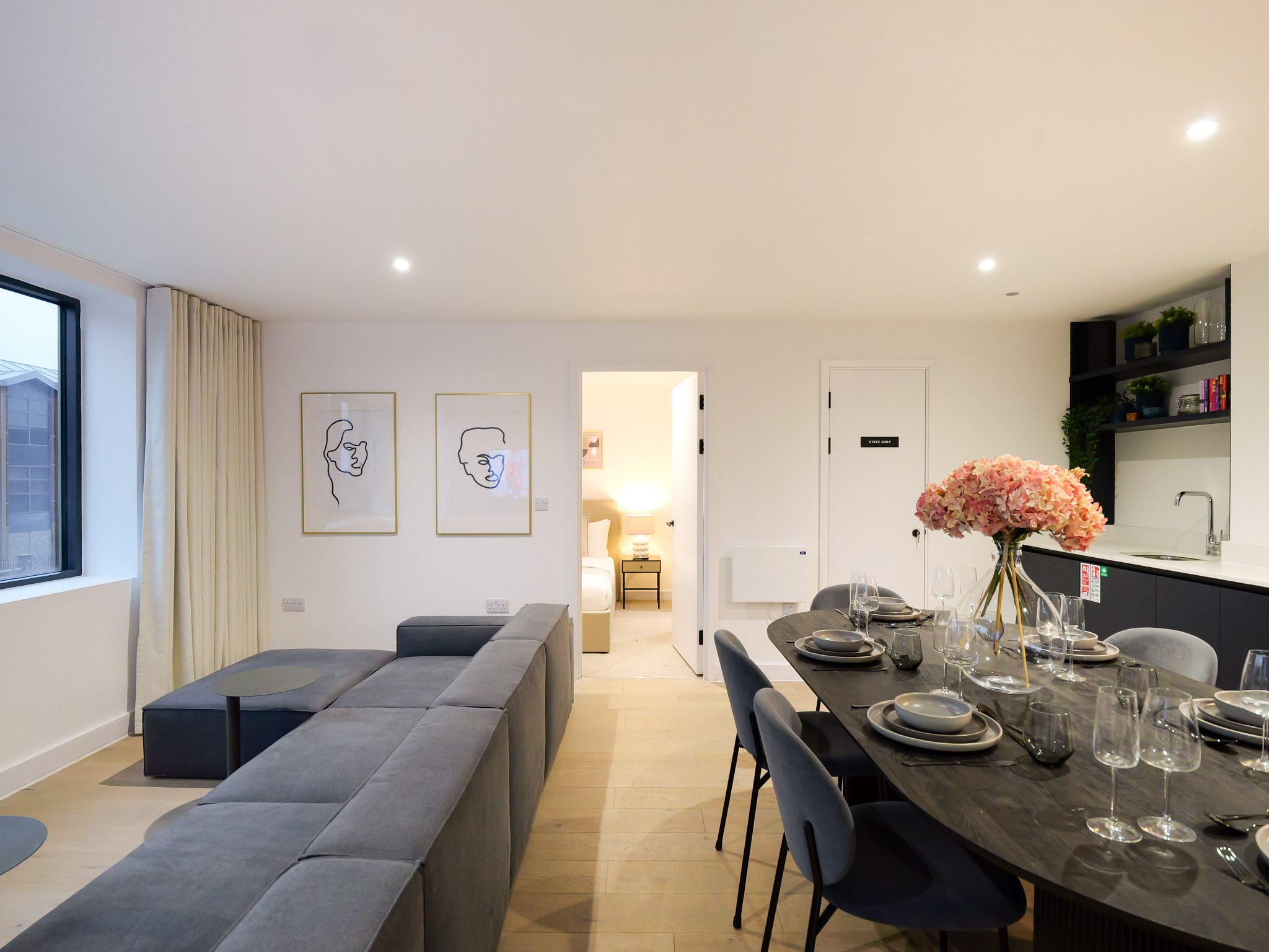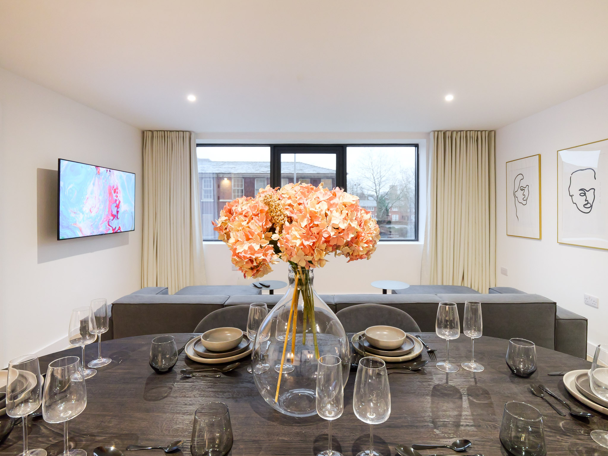 This thoughtfully composed two bedroom two bathroom residence spans 653 square feet and sits on the first floor of a contemporary new build on the western edge of Castlefield. Located within the Sky Gardens development, this residence is defined by balance and ease, offering a calm, modern setting shaped for everyday living. The layout is intuitive and well considered, with generous bedroom suites, refined bathrooms and a welcoming central living space. Every room is equipped with a television and includes the Sky entertainment package, adding an effortless layer of comfort to time spent at home.