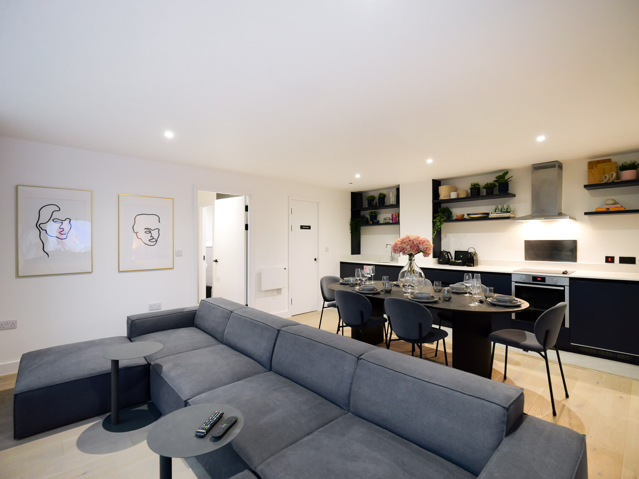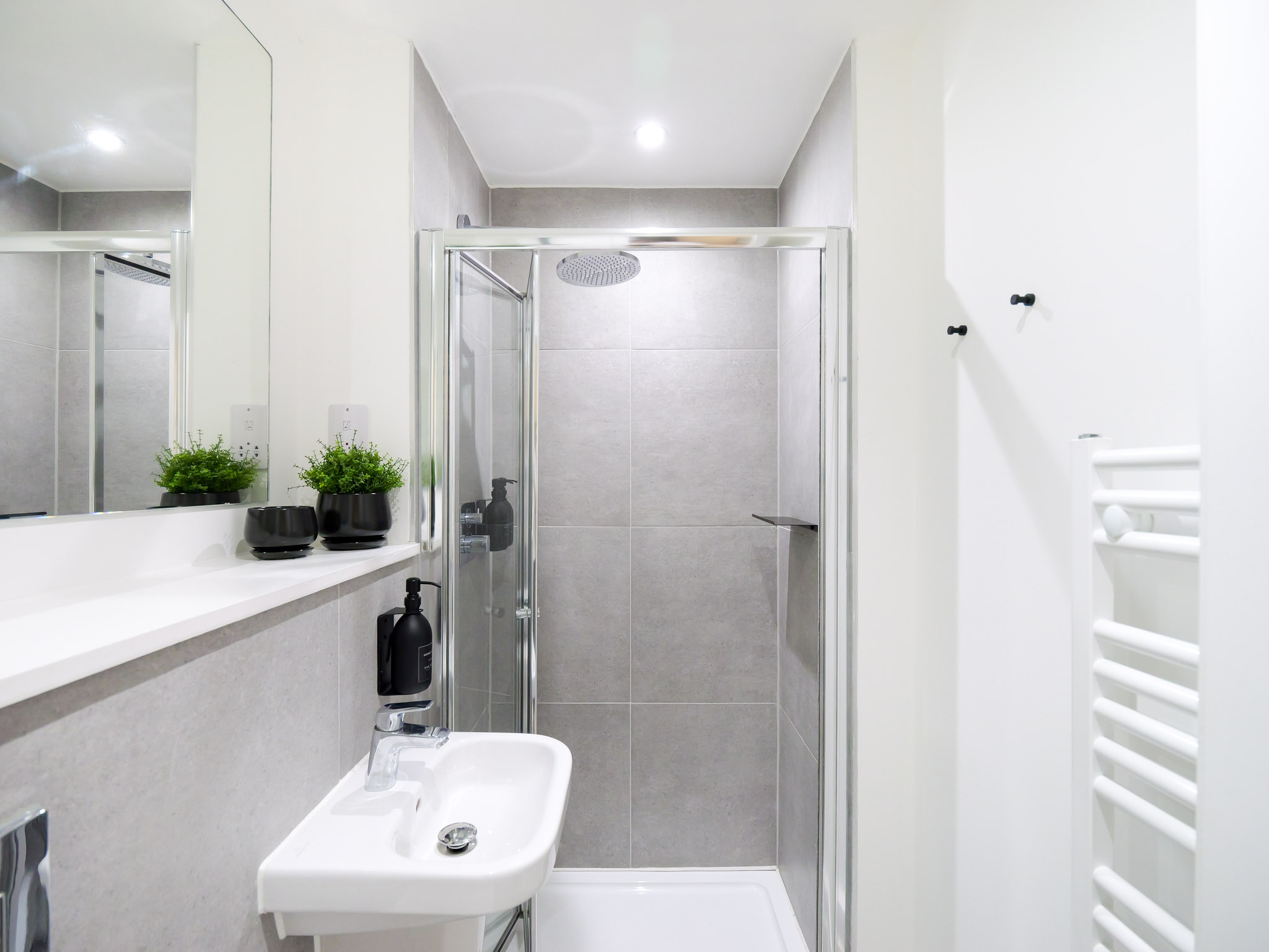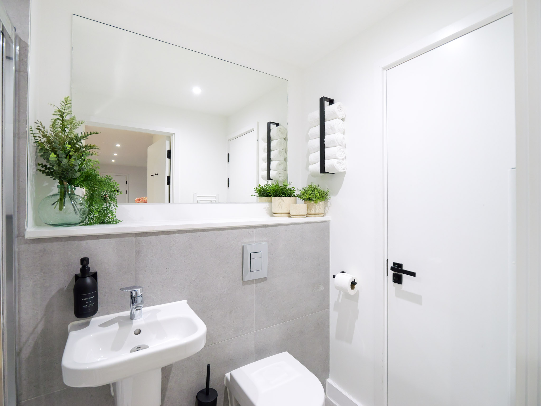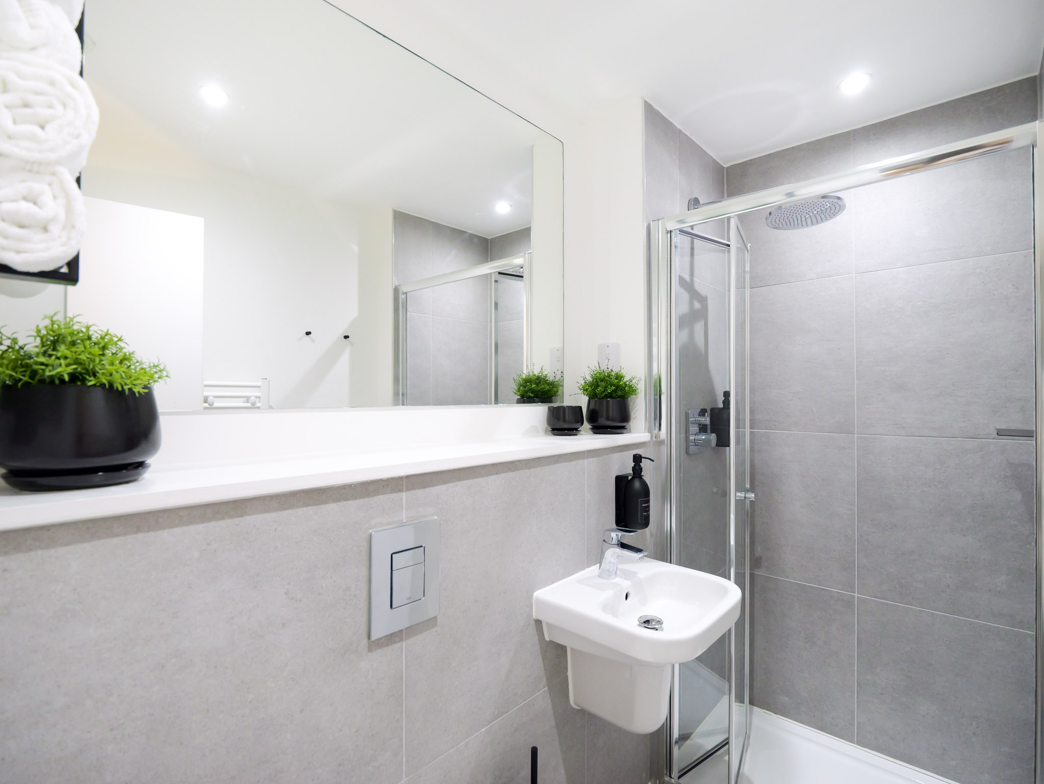This thoughtfully composed two bedroom two bathroom residence spans 653 square feet and sits on the first floor of a contemporary new build on the western edge of Castlefield. Located within the Sky Gardens development, this residence is defined by balance and ease, offering a calm, modern setting shaped for everyday living. The layout is intuitive and well considered, with generous bedroom suites, refined bathrooms and a welcoming central living space. Every room is equipped with a television and includes the Sky entertainment package, adding an effortless layer of comfort to time spent at home.